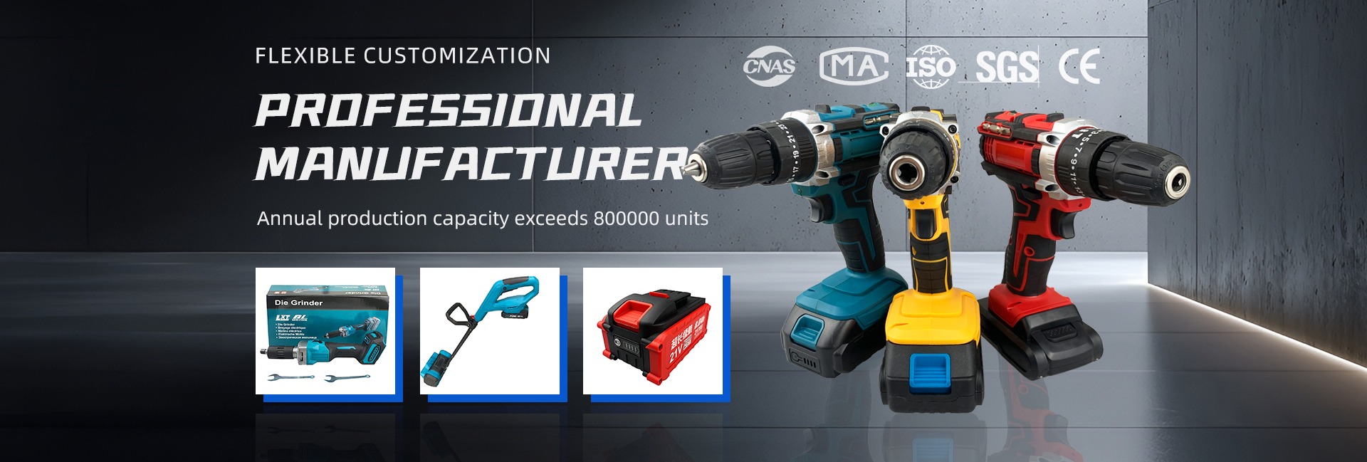 Productos principales:Taladro eléctrico, batería de litio, llave eléctrica, cargador